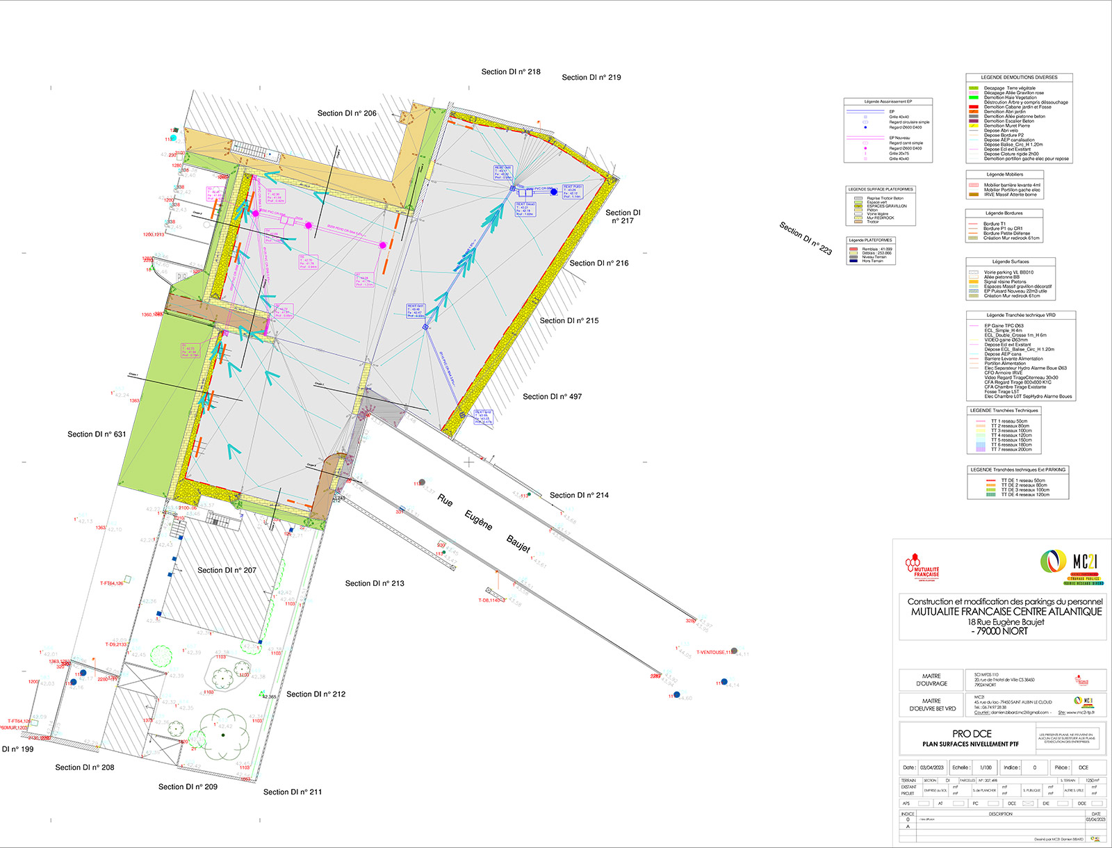 - Participation à l’établissement du permis d’Aménager en collaboration avec les géomètres et les architectes