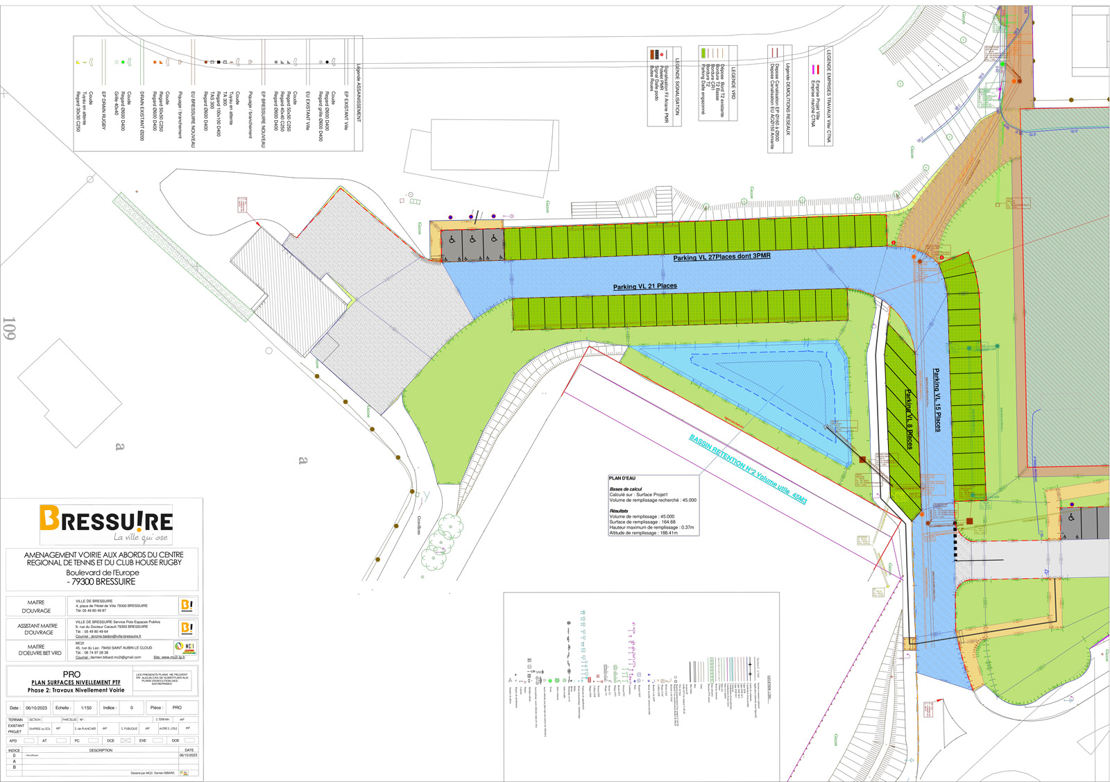 Réalisation d’un projet TP VRD pour le projet d’aménagement de voirie aux abords du CENTRE DE TENNIS NORD AQUITAINE et du Club House Rugby pour le compte de la Ville de BRESSUIRE (79300) (missions APD, PRO, DCE, ACT, VISA EXE, DET, AOR pour un lot Unique.)